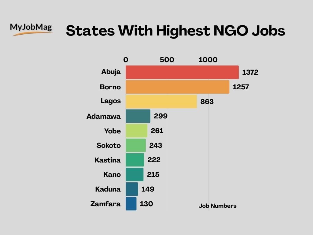 Compared to 2024, there was a slight decline in total NGO openings, suggesting that funding and organisational activity is contracting. Abuja remained the top hub, hosting around 46% of all NGO jobs, followed closely by Borno with about 42%. Lagos accounted for roughly 29%, showing a smaller share compared to its dominance in overall job postings.
